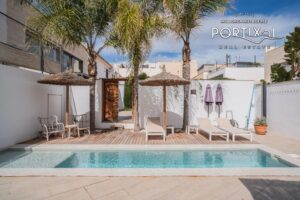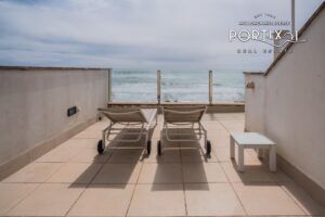 Ein absolutes Highlight ist der private Innenhof von ca. 200 m², der mit einem Swimmingpool, einer Außenküche und ausreichend Platz für Lounge- und Essbereiche ausgestattet ist. Hier können Sie das mediterrane Klima in vollen Zügen genießen, vom Sonnenbaden am Pool bis zu geselligen Abenden unter freiem Himmel. Die Dachterrasse bietet zusätzlich einen spektakulären Meerblick und lädt zu unvergesslichen Momenten bei Sonnenauf- oder -untergang ein.