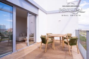 Ein besonderes Highlight ist der fantastische Weitblick auf das Meer sowie die umliegende Berglandschaft, den Sie sowohl von der Wohnterrasse als auch von der privaten Dachterrasse in vollen Zügen genießen können – ein echtes Alleinstellungsmerkmal in dieser Lage.