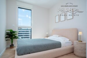 Das Penthouse verfügt über insgesamt drei Schlafzimmer, darunter eine komfortable Master-Suite mit eigenem Badezimmer. Zwei weitere Schlafzimmer sowie ein zusätzliches Badezimmer bieten ausreichend Platz für Familie, Gäste oder Homeoffice.