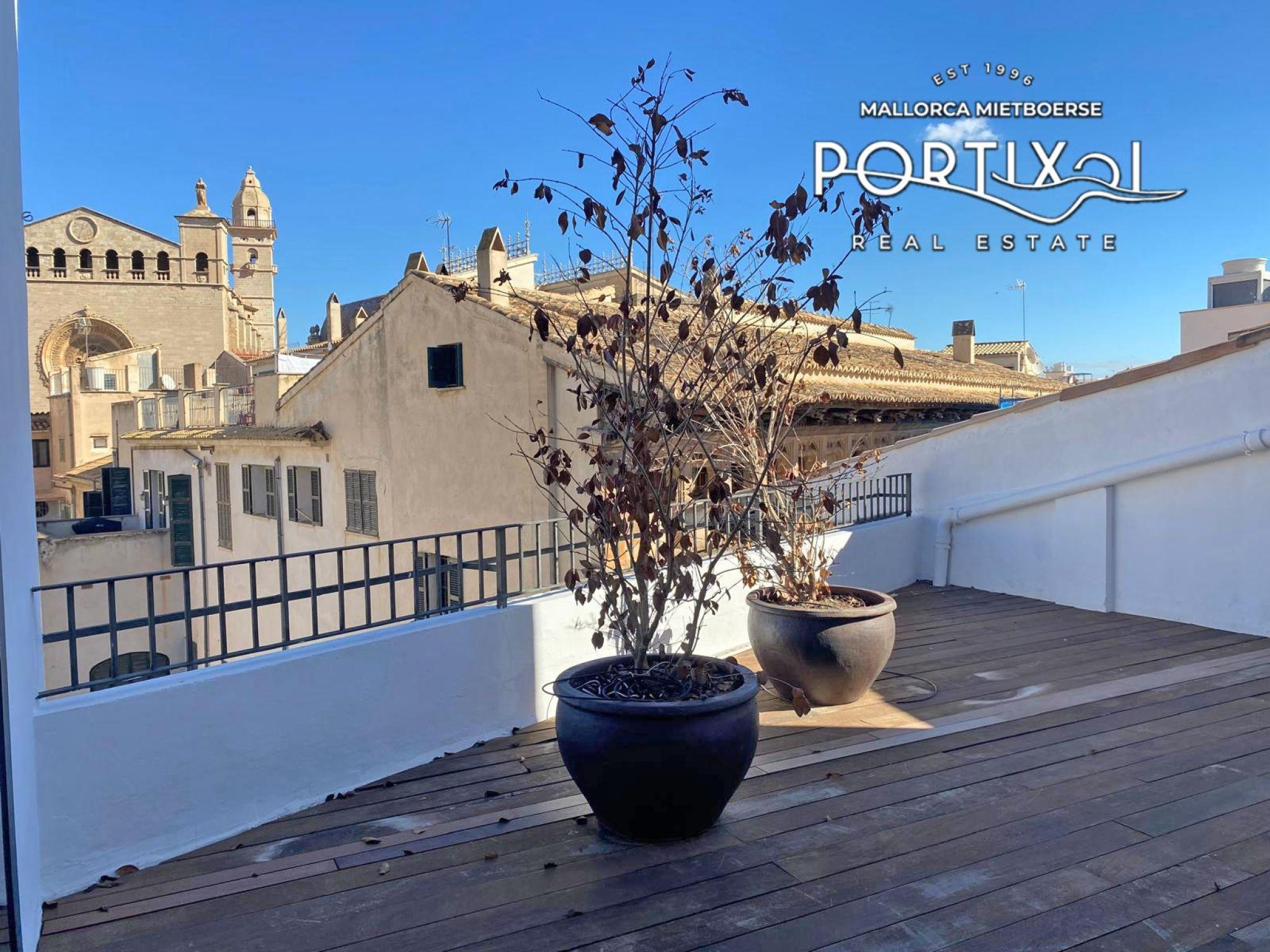 Charming apartment in the centre of Palma, with a usable area of approximately 80 m² distributed into a double bedroom, an additional room ideal for use as a dressing room or office and a bathroom. It also has a bright living-dining room with a fireplace, a fitted kitchen, a laundry room and a magnificent terrace with views of the church. The property has air conditioning warm/cold and is rented unfurnished.