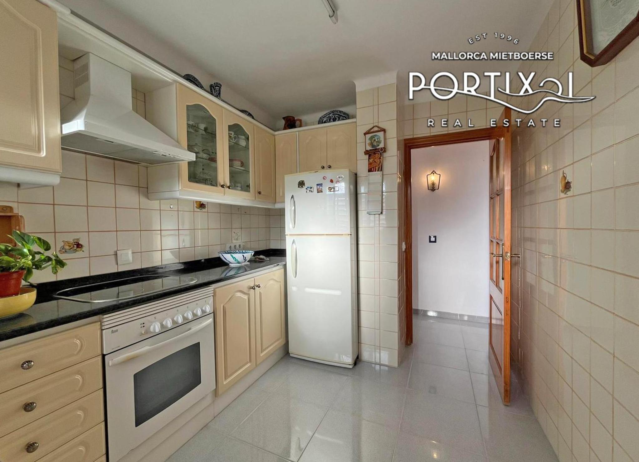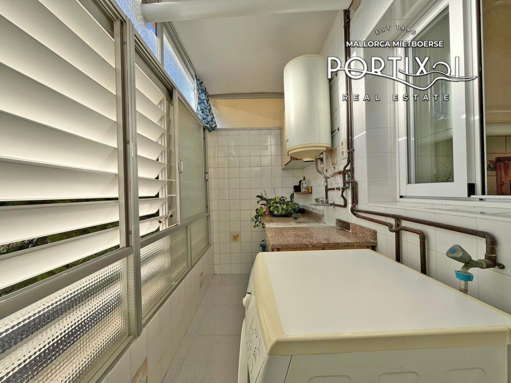 Spacious apartment with many possibilities and a living area of approx. 95 m² distributed into 3 bedrooms (two doubles and one single) and a bathroom. Furthermore, it has a bright living-dining room with access to a large terrace of approx. 15 m², a fitted kitchen, a utility room, a garage parking space and a storage room. The property has air conditioning warm/cold. The building has a lift and is very well located, close to supermarkets, pharmacies and public transport.