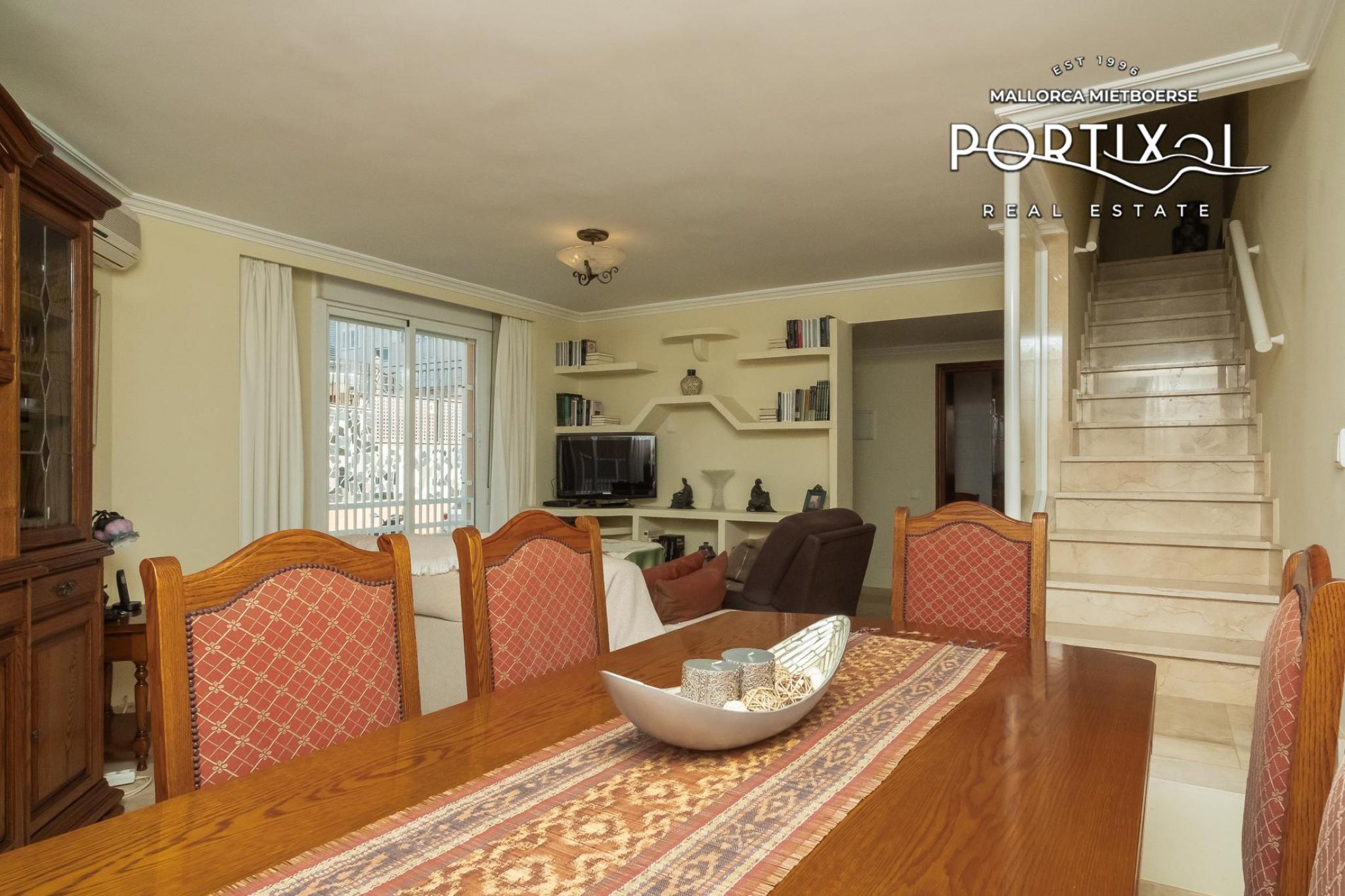 Spacious semi-detached house, with many possibilities, in second sea line, with a living area of approximately 121 m² distributed into 4 bedrooms (2 doubles and 2 singles), 2 bathrooms (one of them en suite) and a guest toilet. Furthermore it has a spacious living-dining room, a fitted kitchen, a utility room, a sunny patio ideal to enjoy the summer evenings, a balcony, a storage room and two parking spaces. The house has air conditioning warm/cold and gas central heating. The property is located in a quiet area of Molinar, a few meters from the sea, close to pharmacies, supermarkets and restaurants.