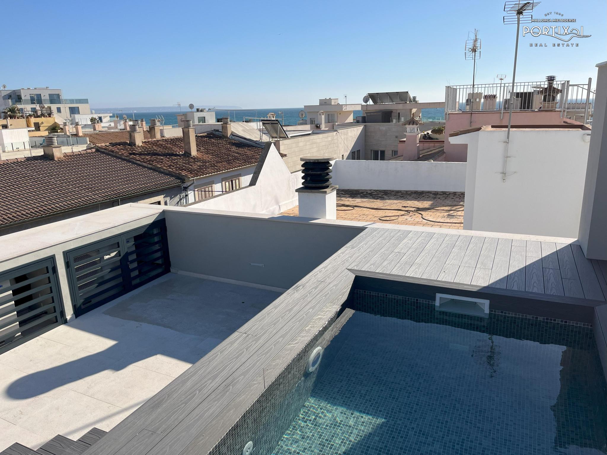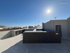 Amplio chalet adosado a pocos metros del mar, con una superficie útil de aproximadamente 211 m² que se distribuye en 4 habitaciones (3 dobles y 1 simple), 2 baños y un aseo. Además, dispone de un luminoso salón-comedor, una cocina equipada con sistema Bora, coladuría, una gran azotea con piscina y vistas parciales al mar y un garaje. El inmueble dispone de calefacción de suelo radiante y aire acondicionado frío/calor. El chalet ha sido recientemente reformado y se encuentra muy bien ubicado cerca de supermercados, farmacias, restaurantes y del transporte público.