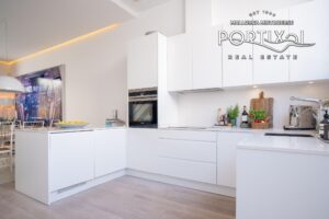 El luminoso salón-comedor con cocina abierta, equipada con electrodomésticos de alta gama y vinoteca, invitan a disfrutar y relajarse. Materiales de alta calidad, líneas claras y toques mediterráneos crean un ambiente armonioso que representan a la perfección la vida moderna de Mallorca.