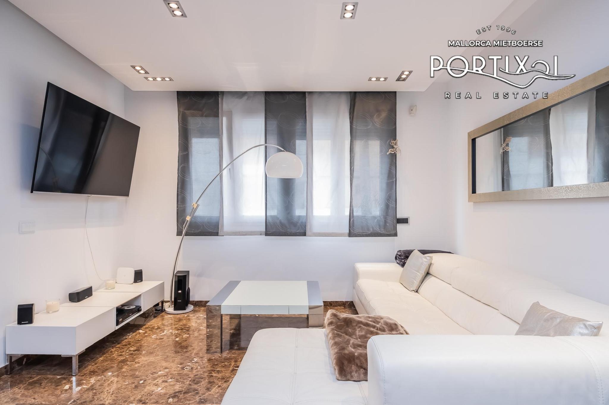 Luminoso chalet adosado con una superficie útil de aproximadamente 208 m² que se distribuye en 3 habitaciones dobles, 2 baños (uno de ellos en suite) y un aseo de invitados. Además, dispone de un salón-comedor, una cocina americana totalmente equipada, un patio, una azotea de aproximadamente 65 m² con unas vistas impresionantes a la bahía de Palma y un garaje. El inmueble dispone de aire acondicionado frío/calor y se alquila amueblado. Este adosado fue construido en el año 2008 y se encuentra en una zona tranquila del Molinar, cerca de supermercados, restaurantes y del transporte público.