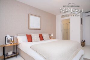 Además, cuenta con un acogedor y funcional salón-comedor, con acceso directo a un balcón con vistas parciales al mar, ideal para disfrutar del clima mediterráneo. La cocina, integrada y totalmente equipada, aporta un toque contemporáneo al conjunto.