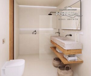 Los materiales de alta calidad, como el moderno suelo de microcemento, un sistema de calefacción aerotérmico de bajo consumo y un sistema domótico inteligente, garantizan un confort contemporáneo y ponen de relieve la excelente calidad de la construcción.